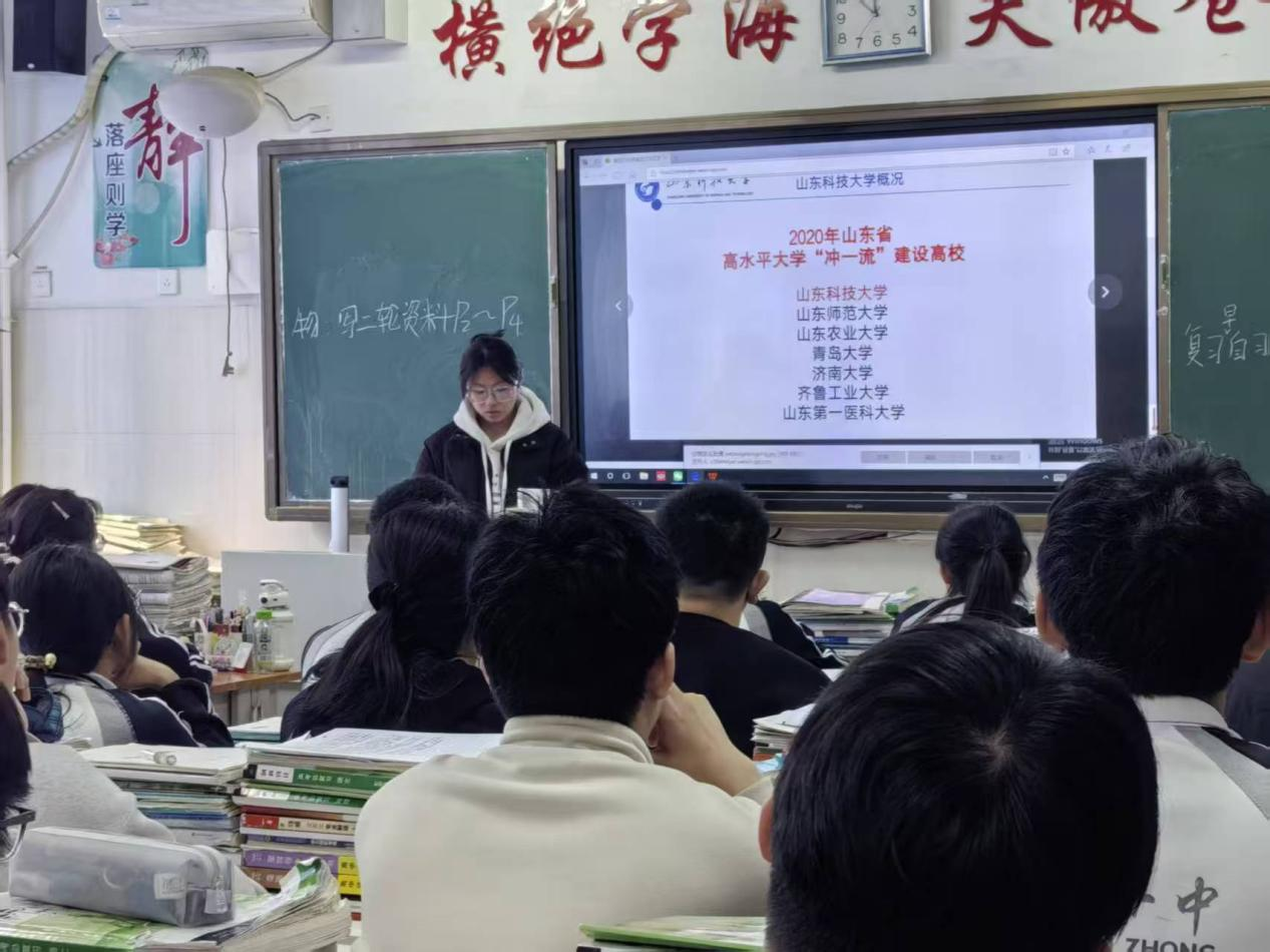 站在高中母校高三的讲台前,望着台下那些熟悉又陌生的面孔,我的思绪被拉回半年前——那时我也像他们一样,对“大学”既憧憬又忐忑。如今,作为色情直播 的大一新生,我带着“我为山科代言”的任务回到了平邑曾子学校。