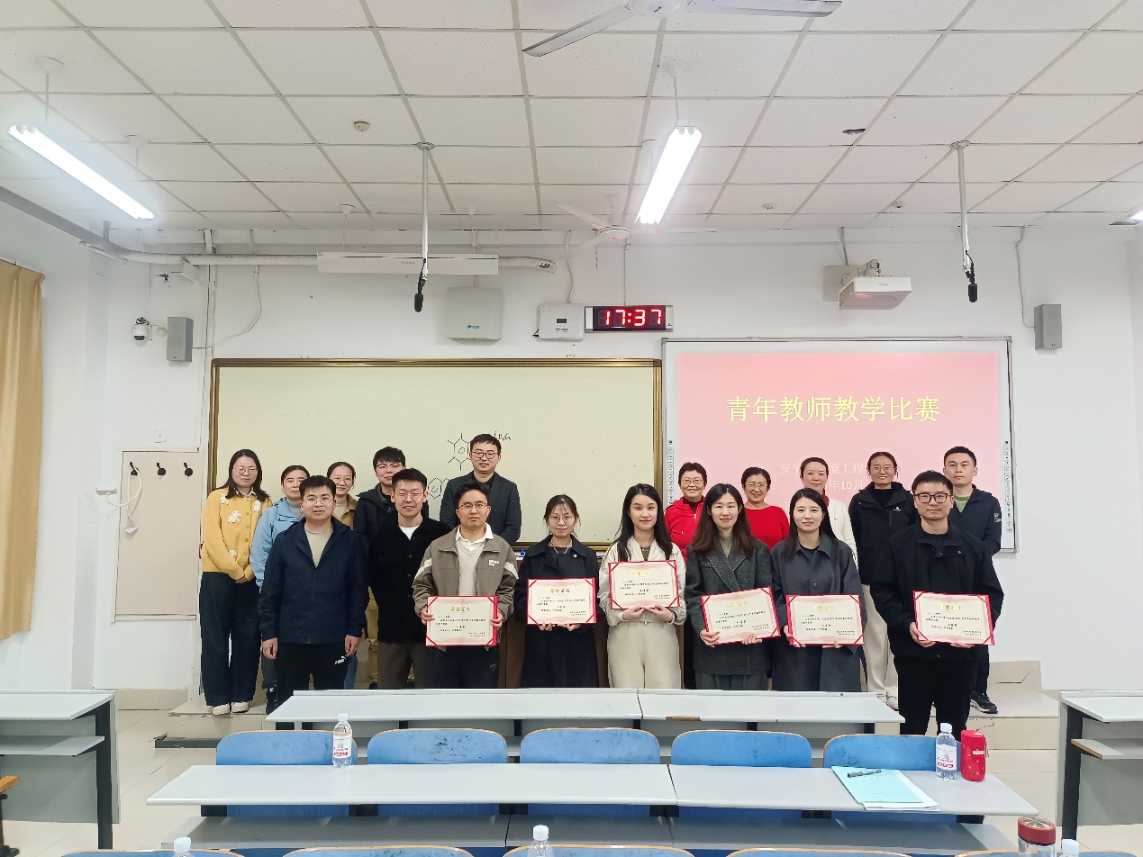 比赛结束后评委从教学内容、教学方法、语言表达等多维度综合考评,对教学亮点充分肯定,同时精准指出不足。评委对六位青年教师逐一点评,为青年教师指明了清晰的改进方向。最终刘强老师获得一等奖,陈信含老师、邓玉睿老师获得二等奖,韩龙飞老师、张龙龙老师、柳茹林老师获得三等奖。